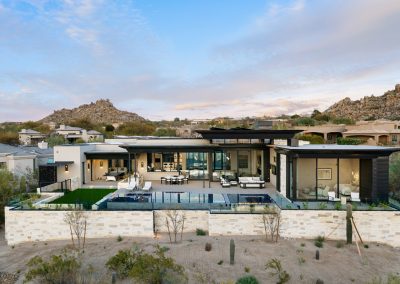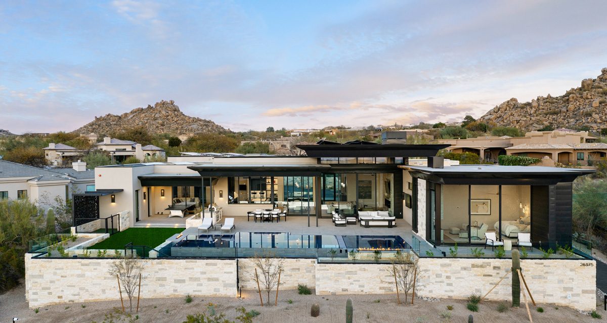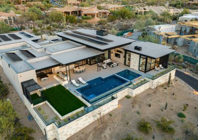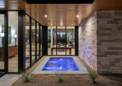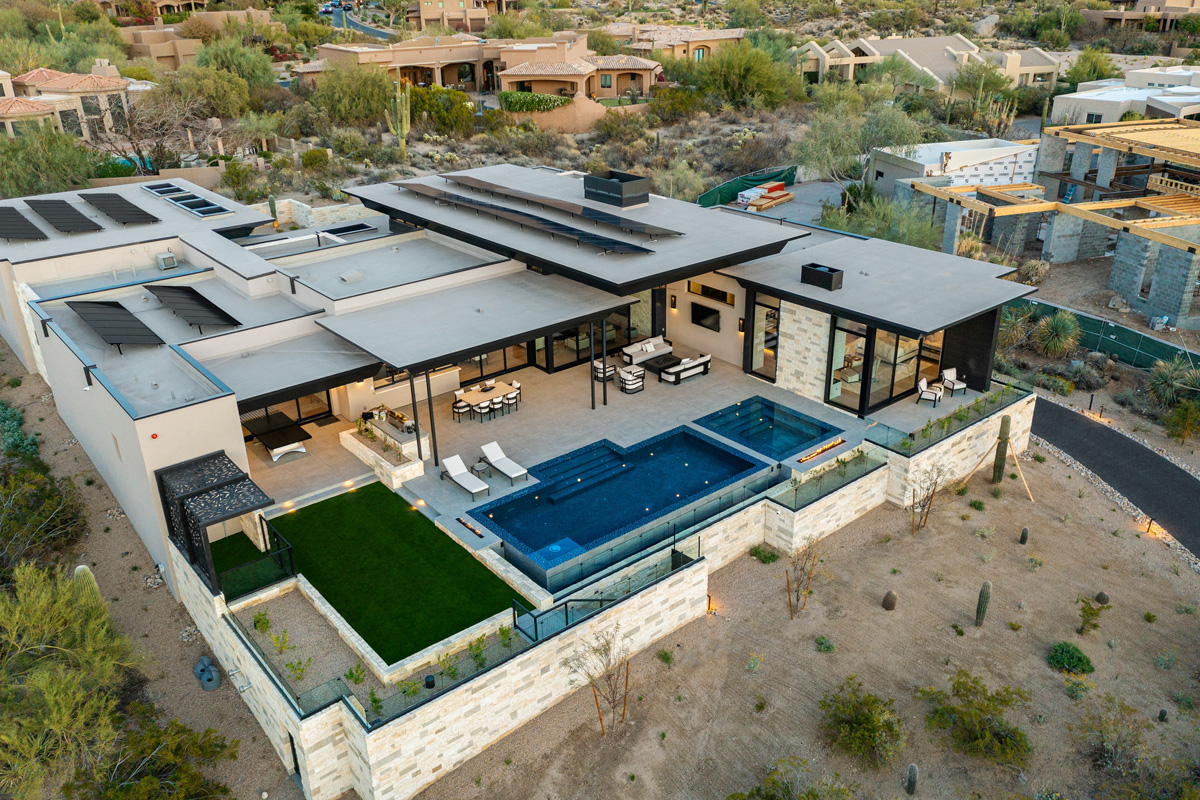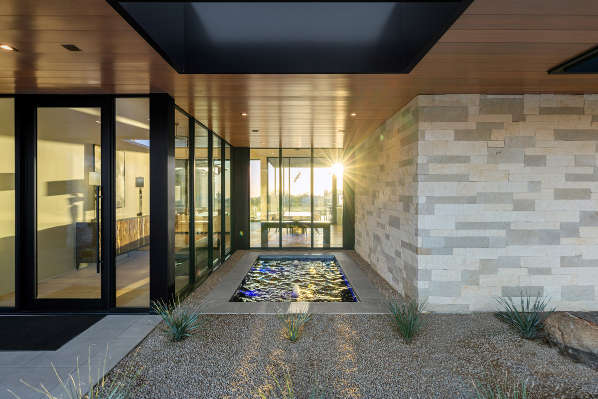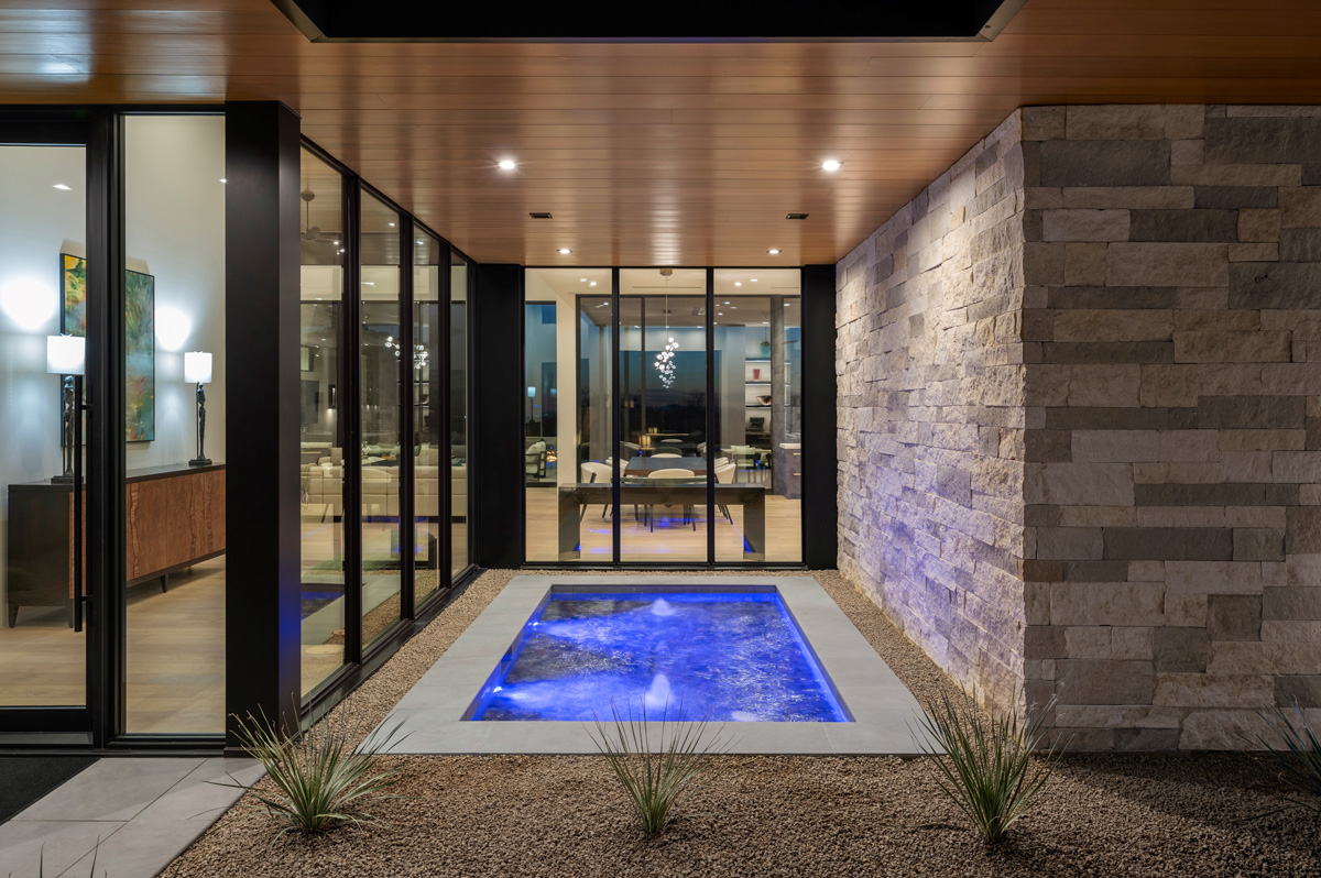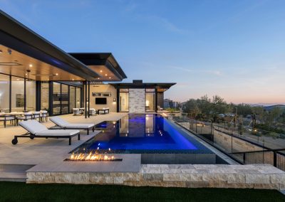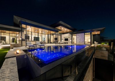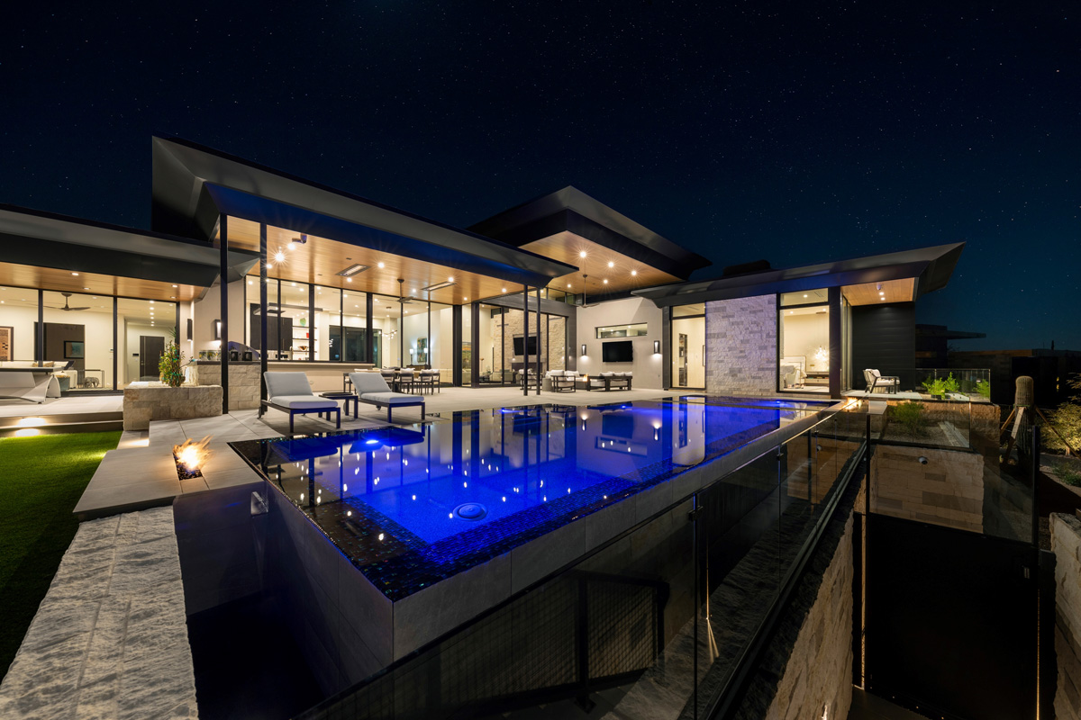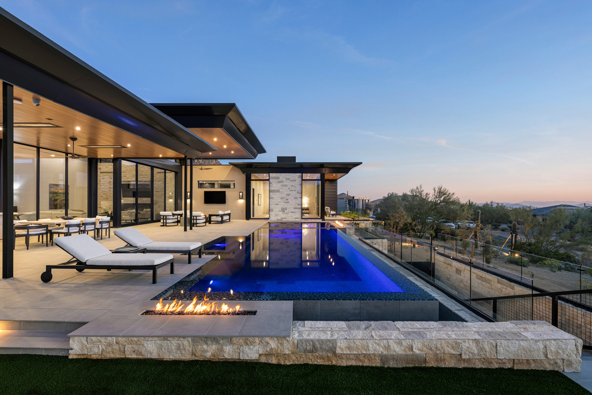 Award-winning infinity pool; two linear fire features, sunken vault conceals equipment
