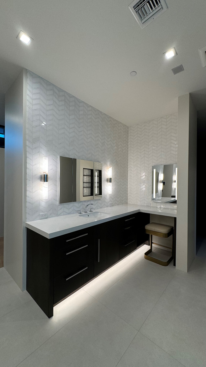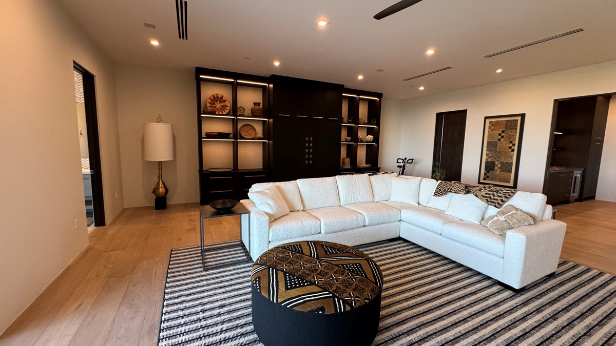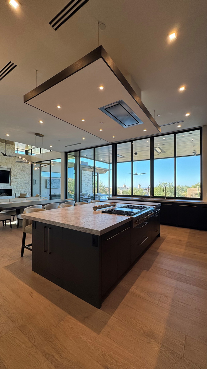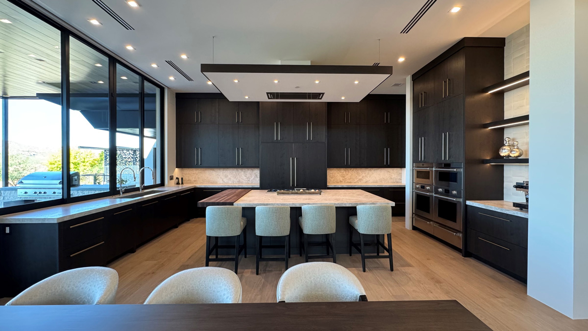 Sleek black walnut custom cabinetry throughout the home