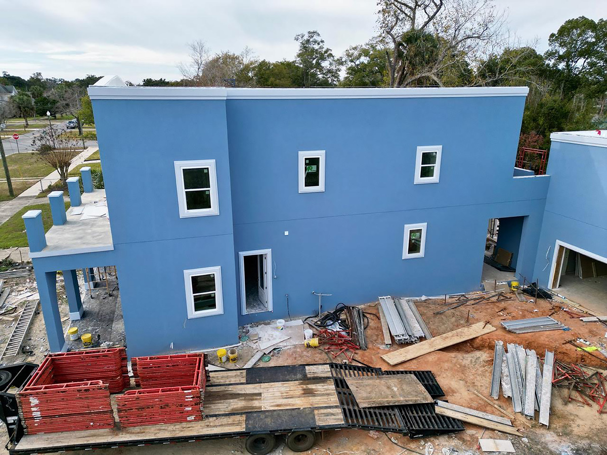 ICF/Helix micro rebar, flat roof, all impact-proof entrances