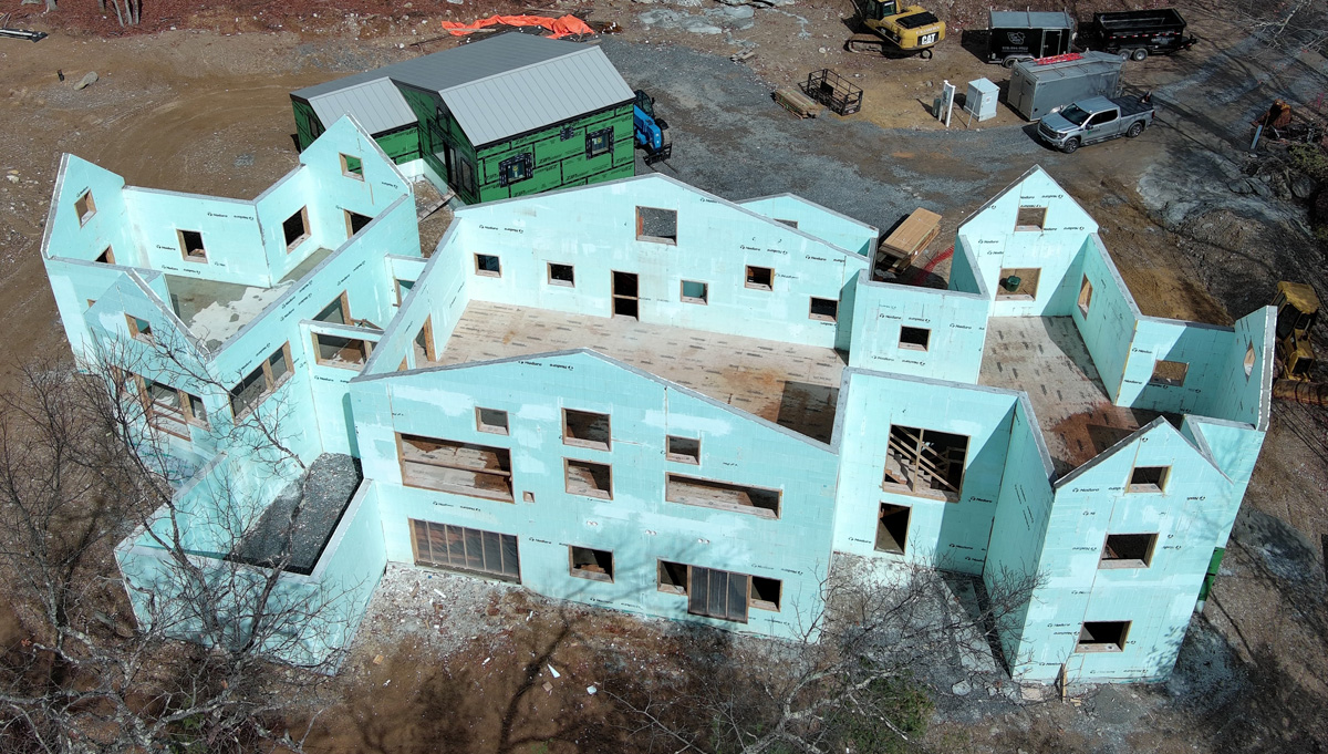 All exterior walls and the structural floor system are ICFs