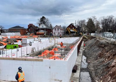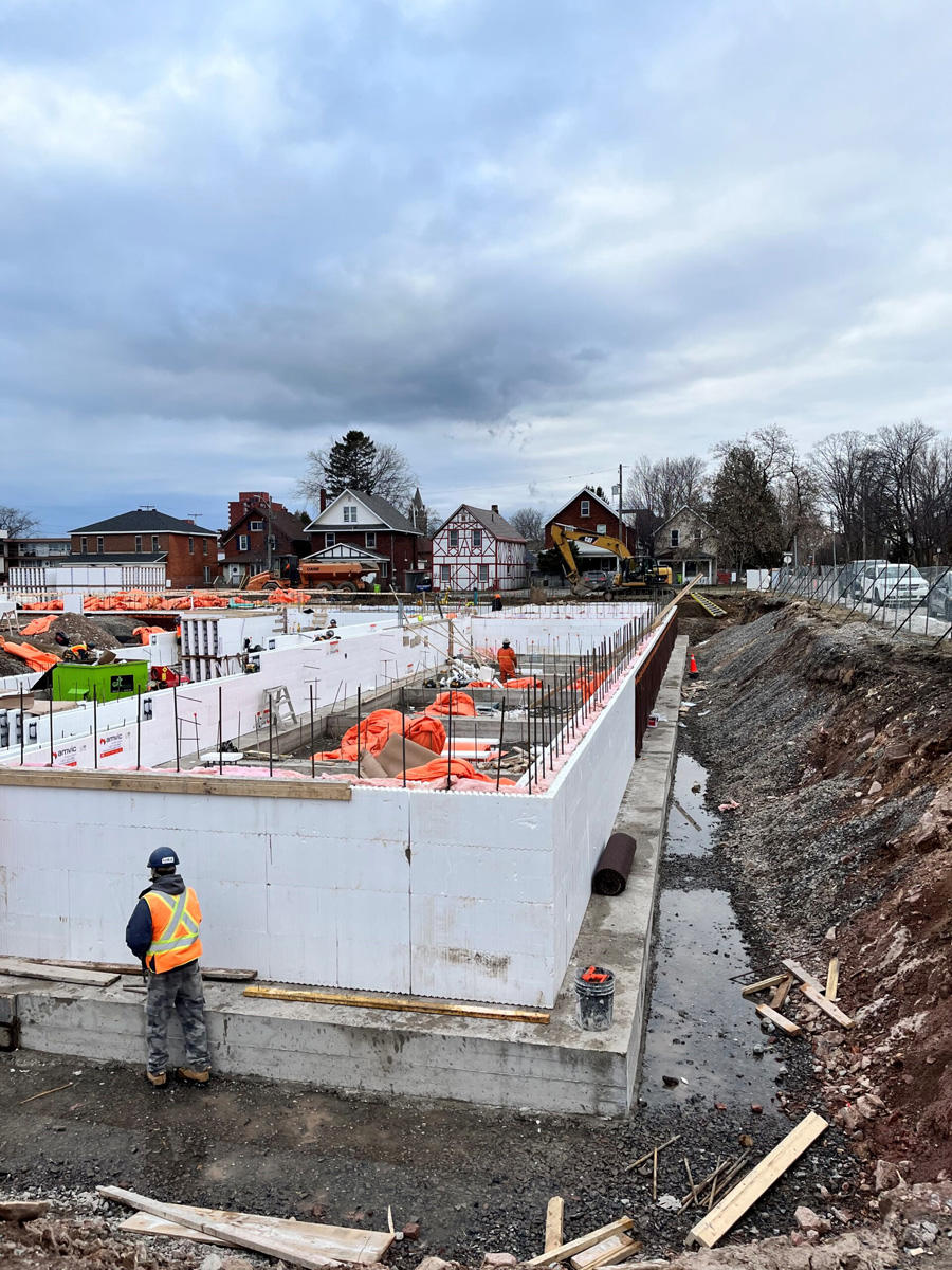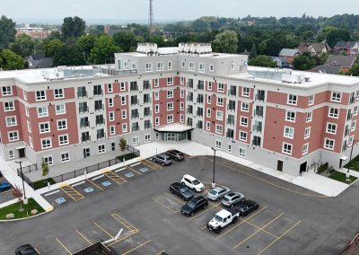 Built atop ruins of a historic apartment building destroyed by 1987 fire