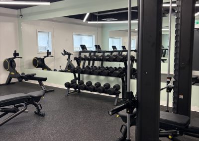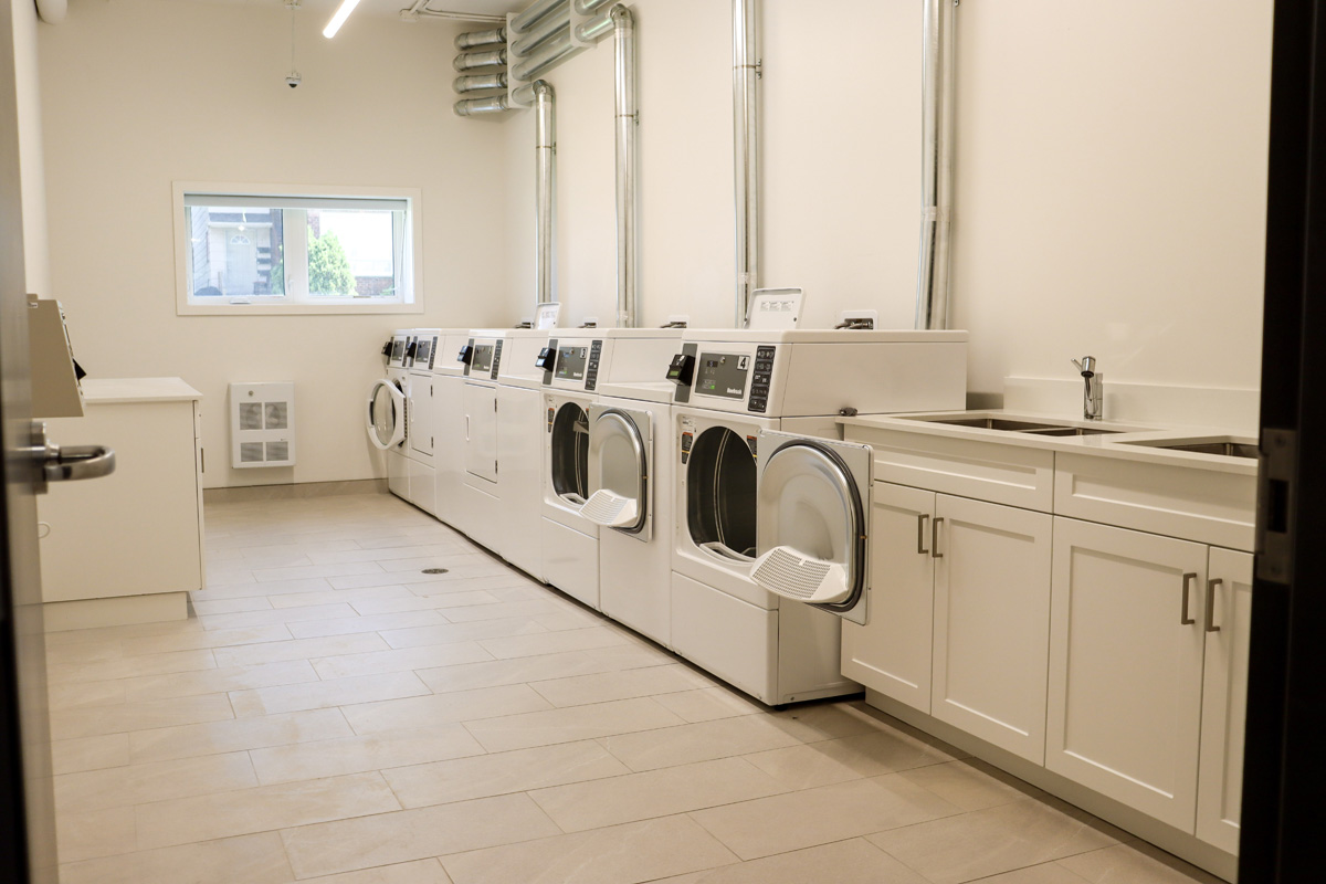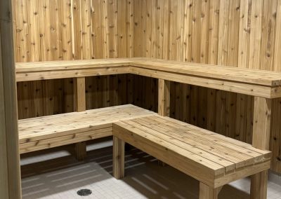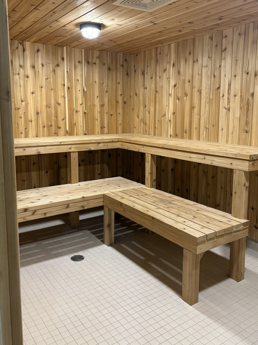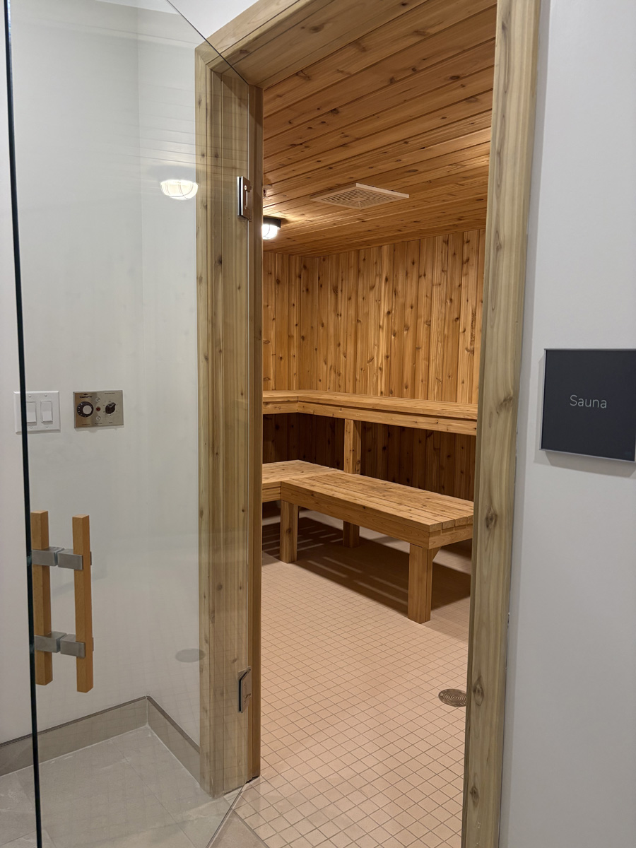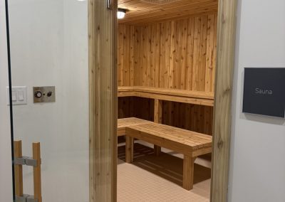 Gym, sauna, laundry, multiple shared spaces, tenant storage lockers