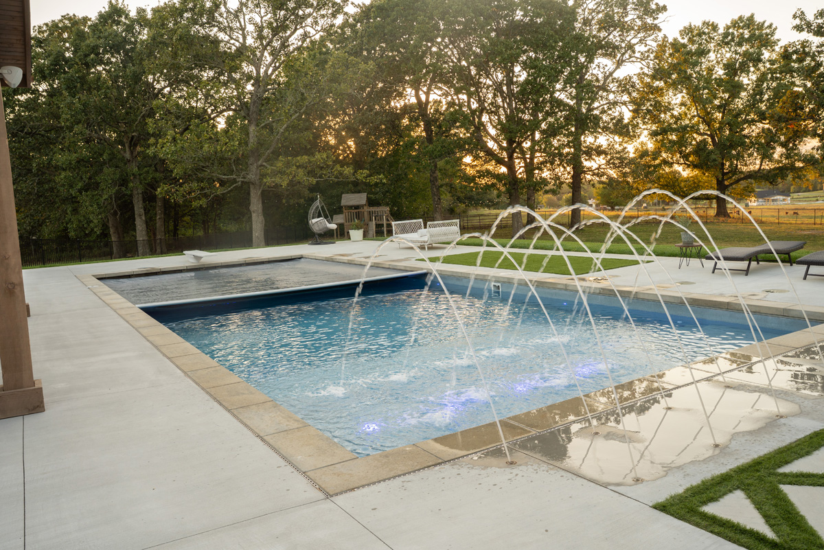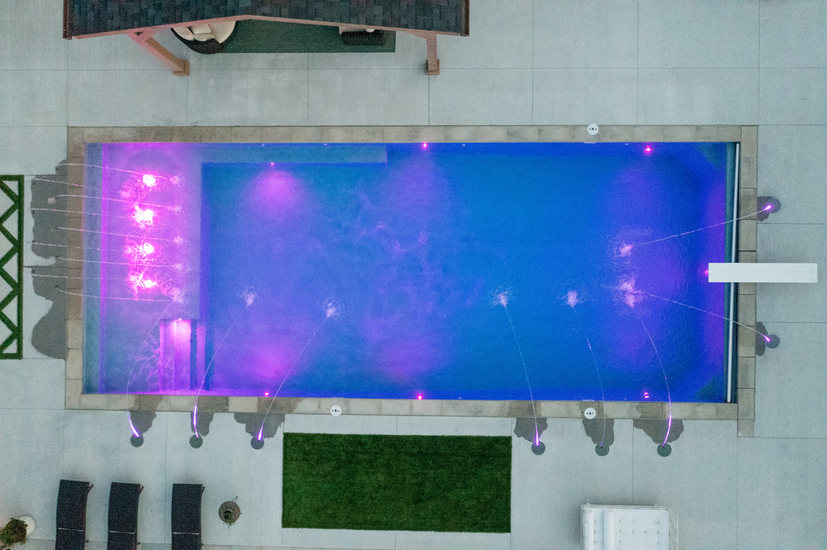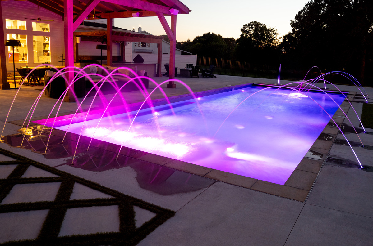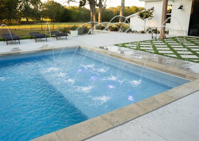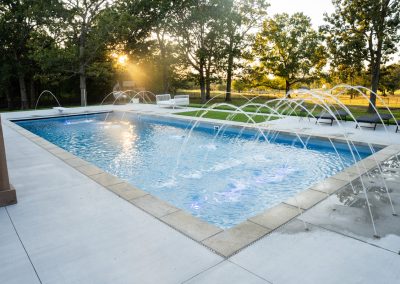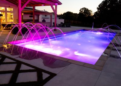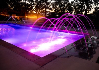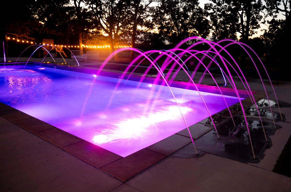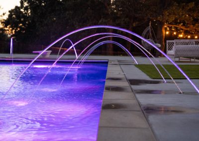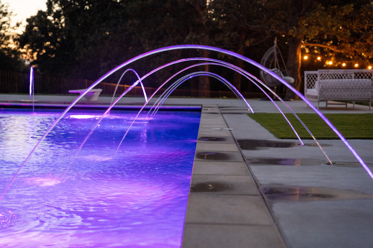 19 deck jet water features with 10 laminar flow LED-lit jets