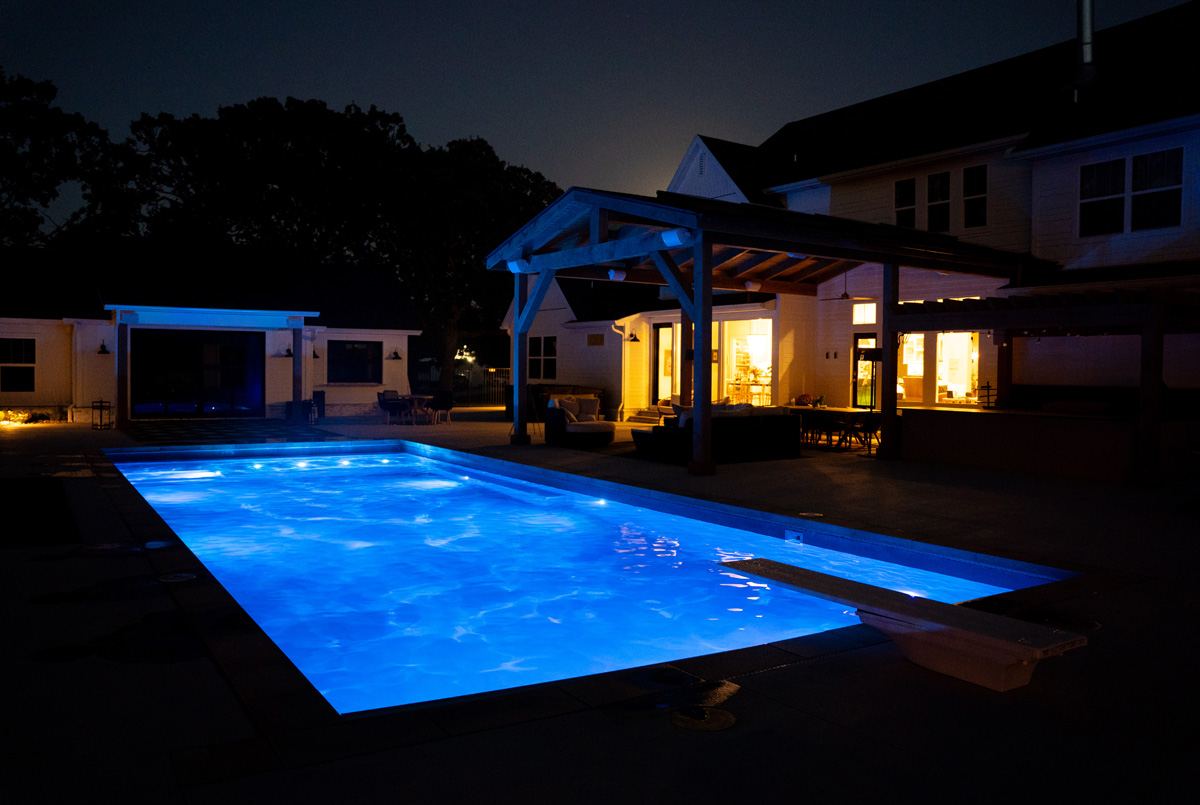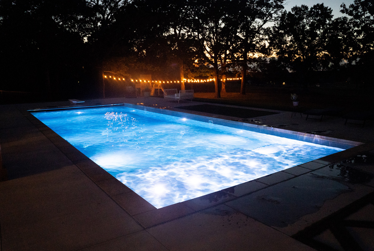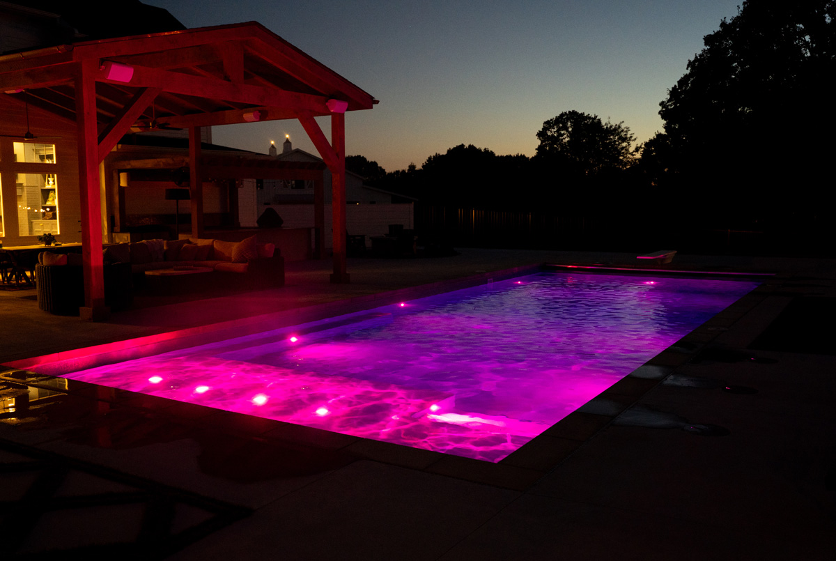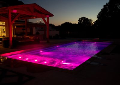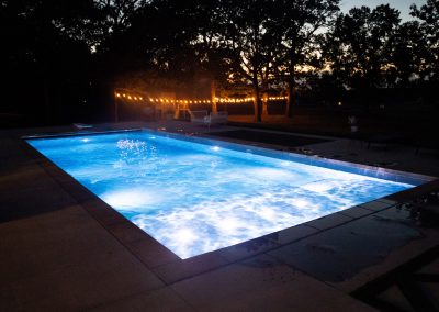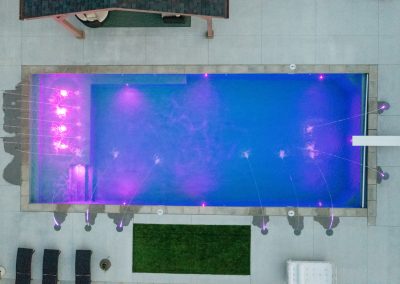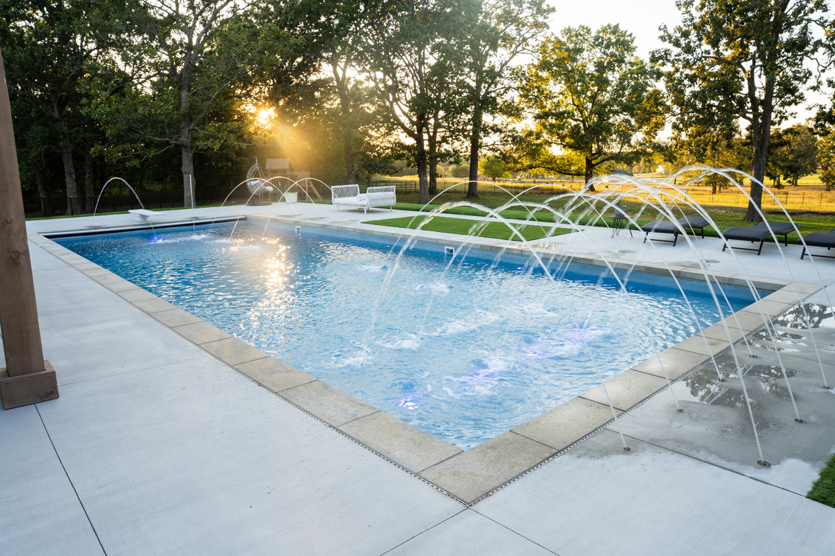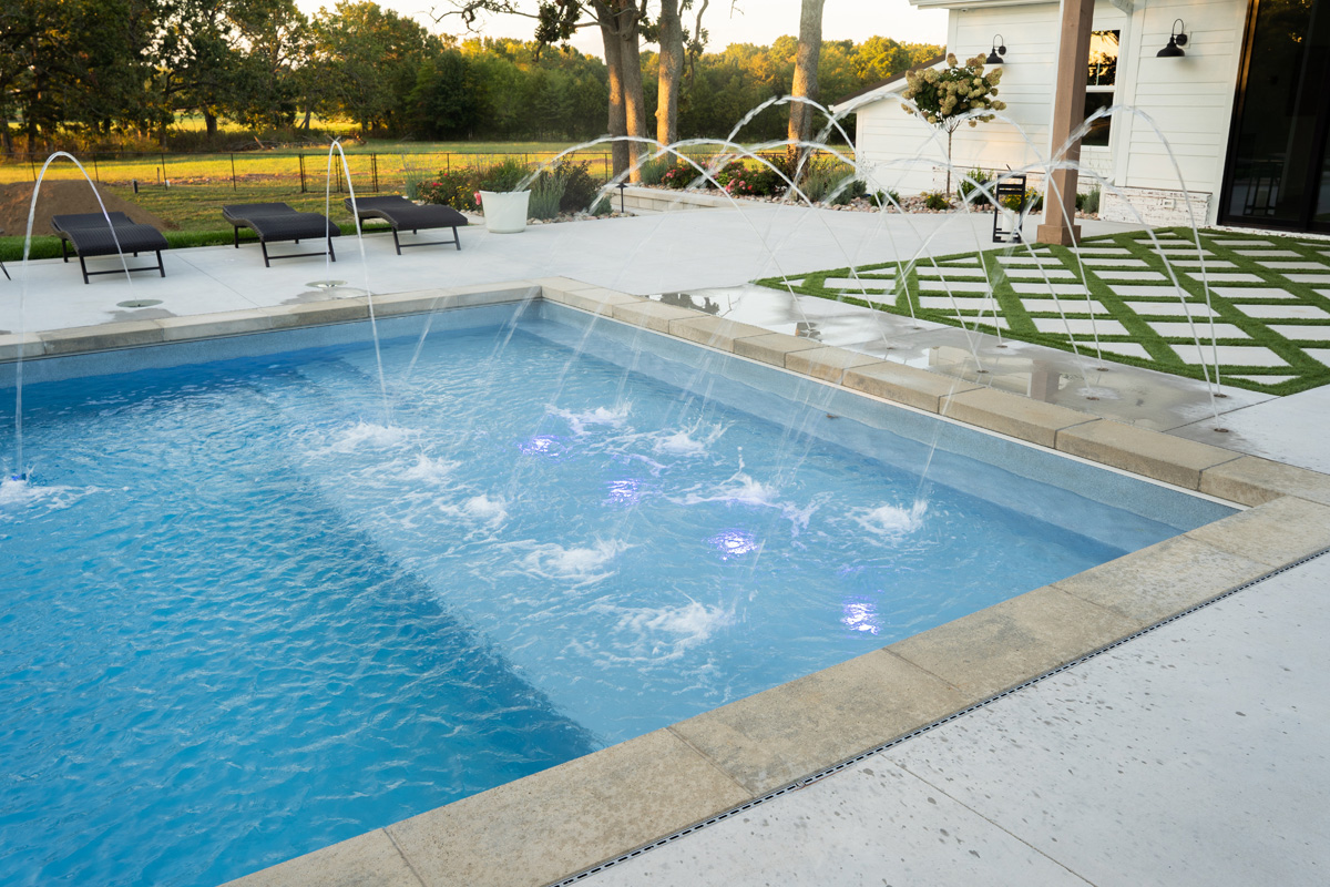 19 deck jet water features with 10 laminar flow LED-lit jets