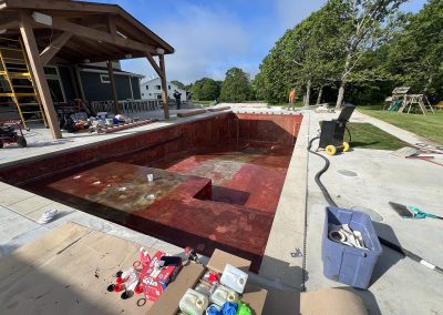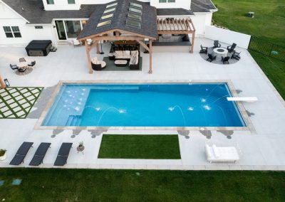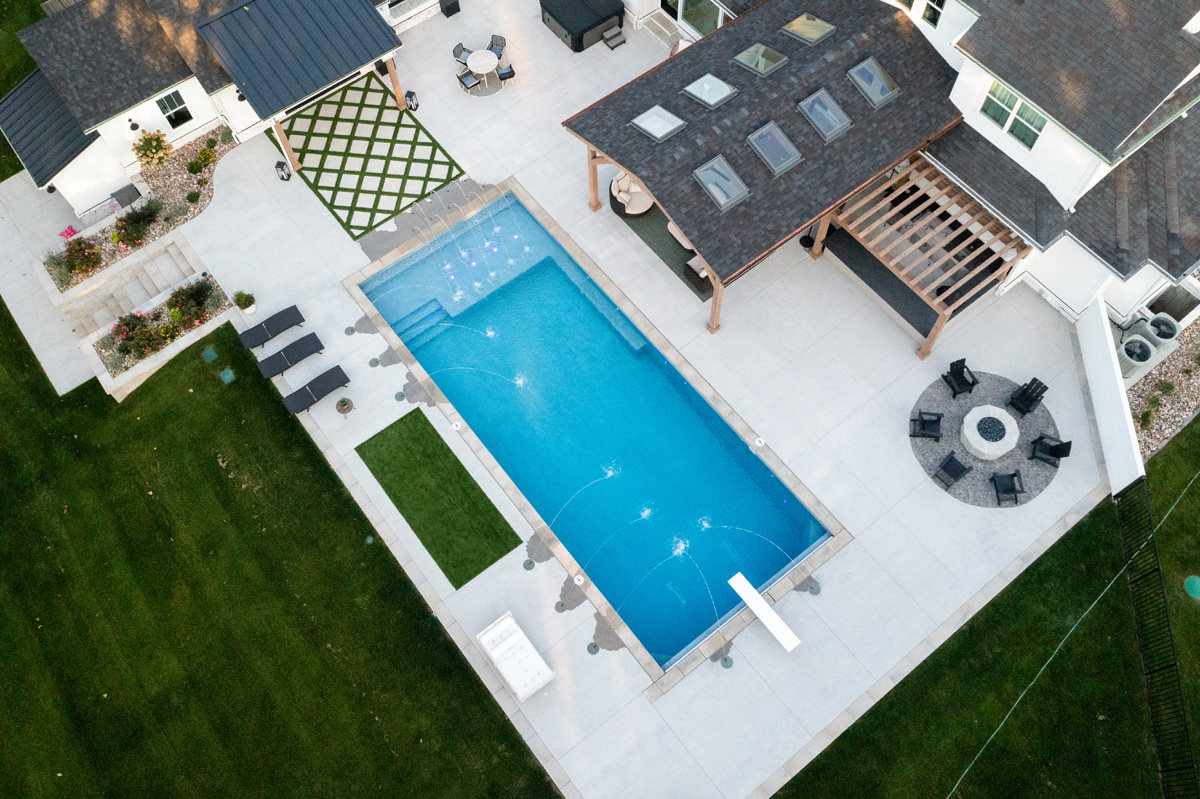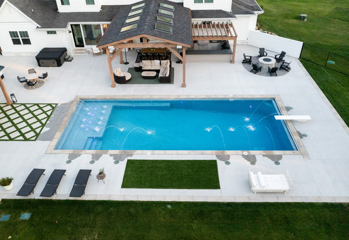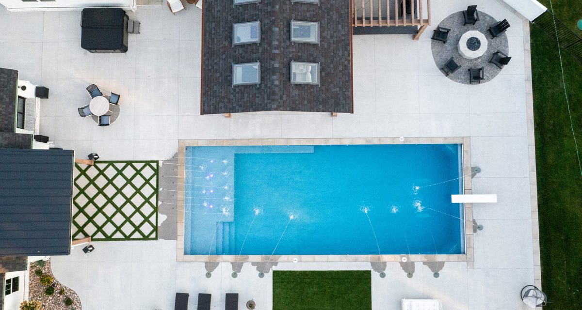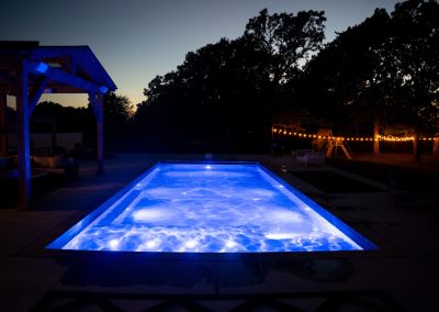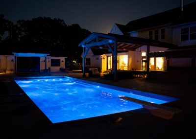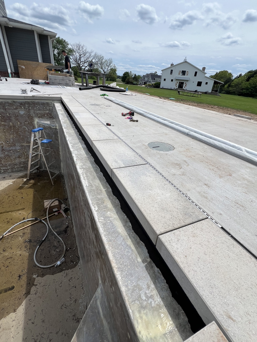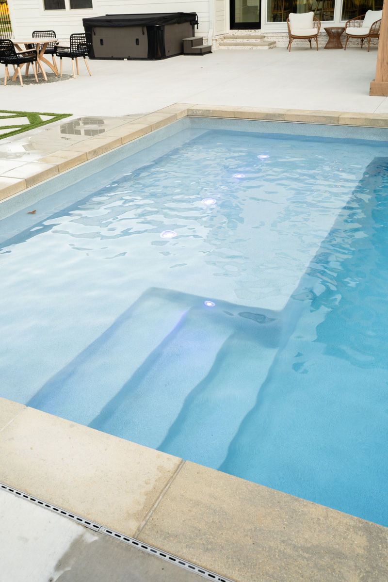 19 deck jet water features with 10 laminar flow LED-lit jets