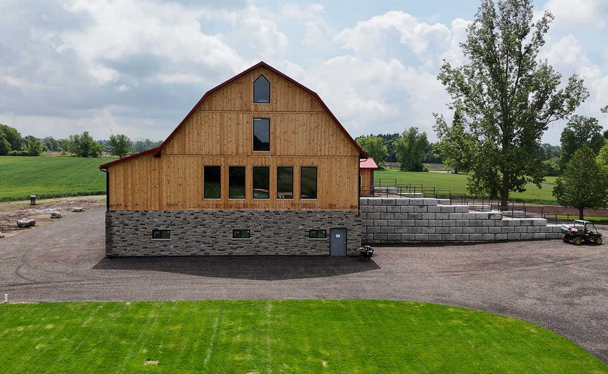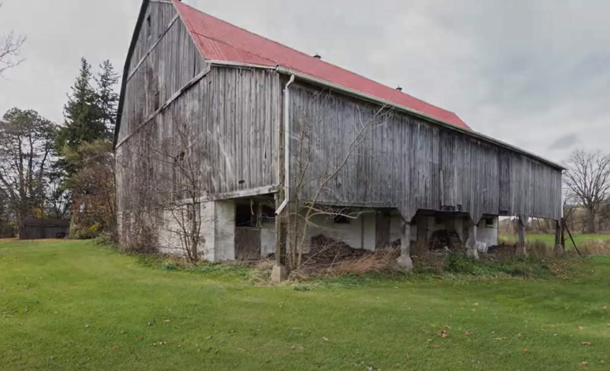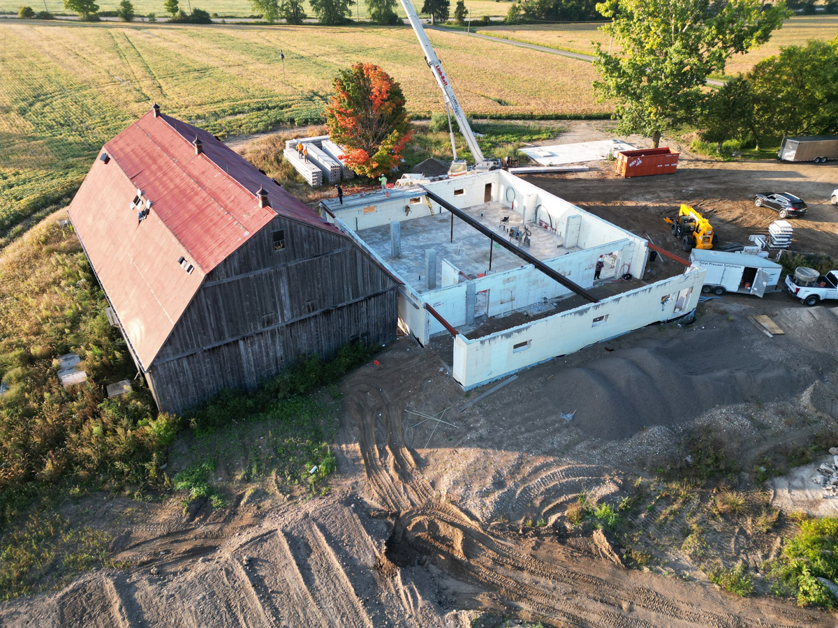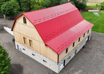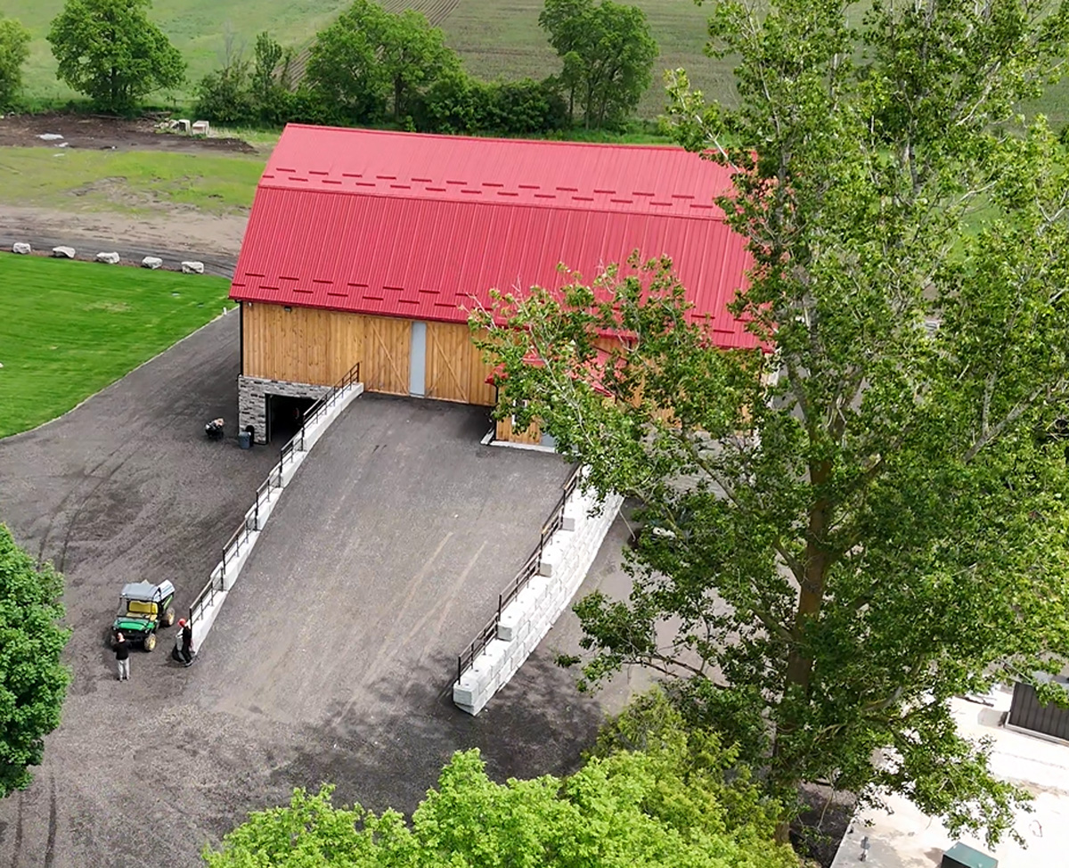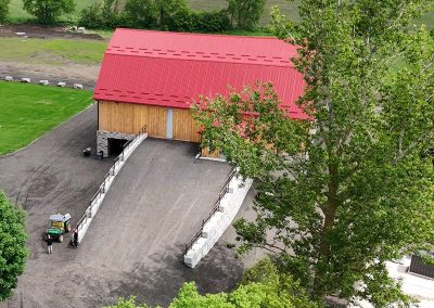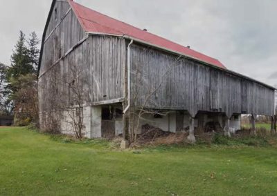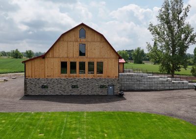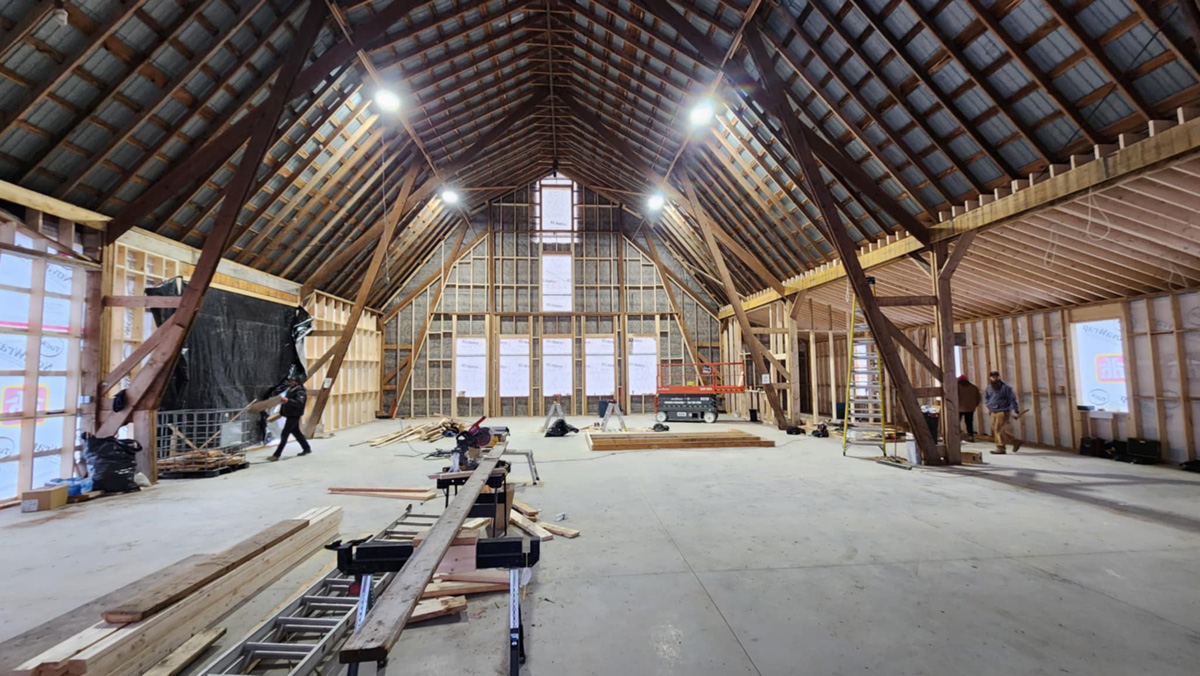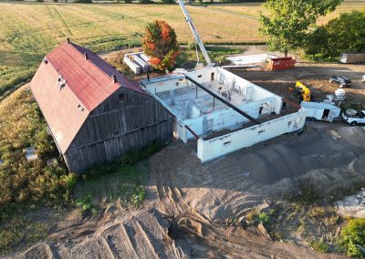 - 1890s barn was crane-lifted from original stone foundation; removed to field during construction