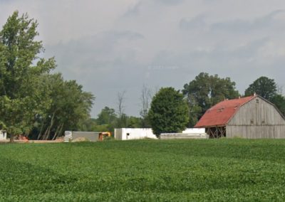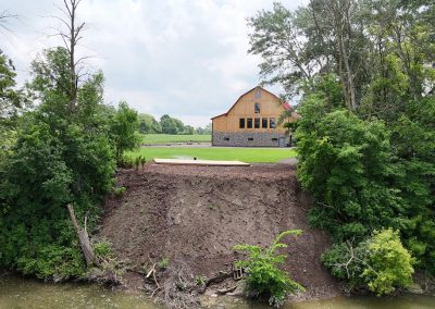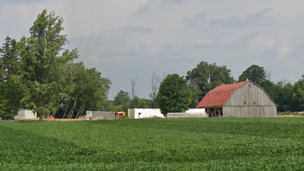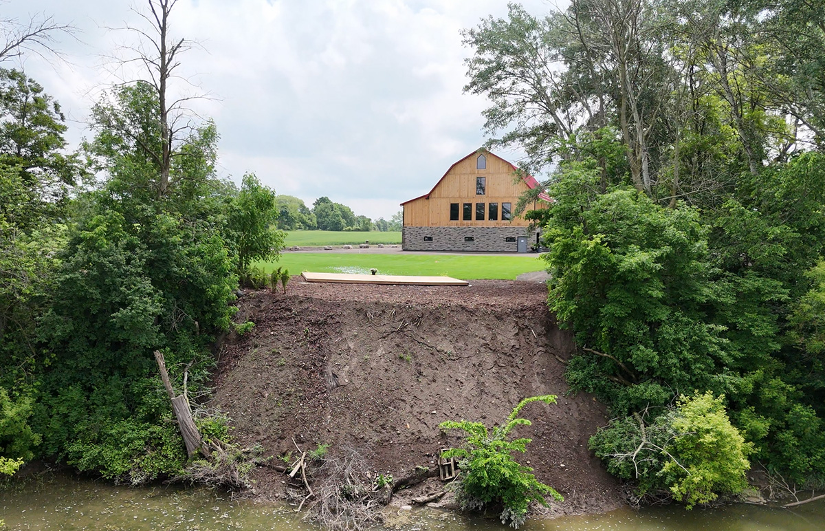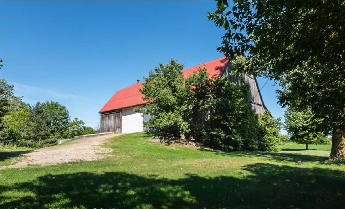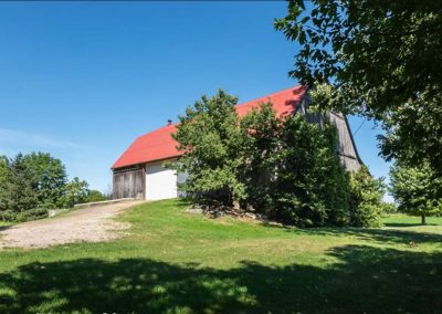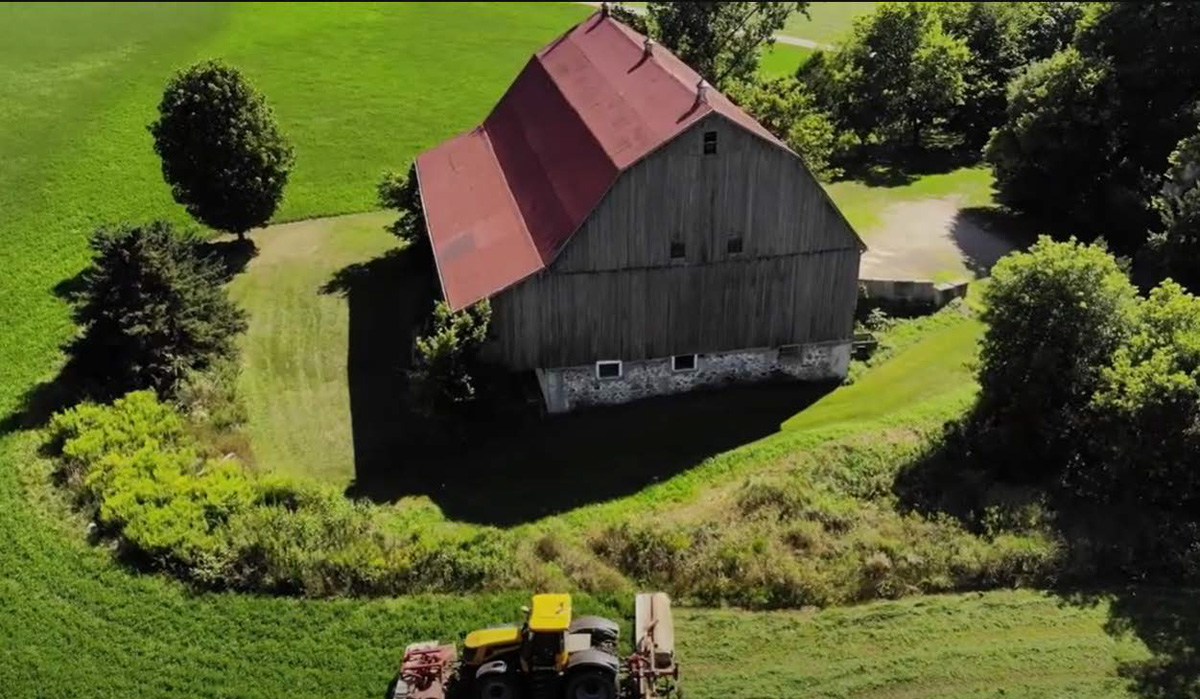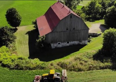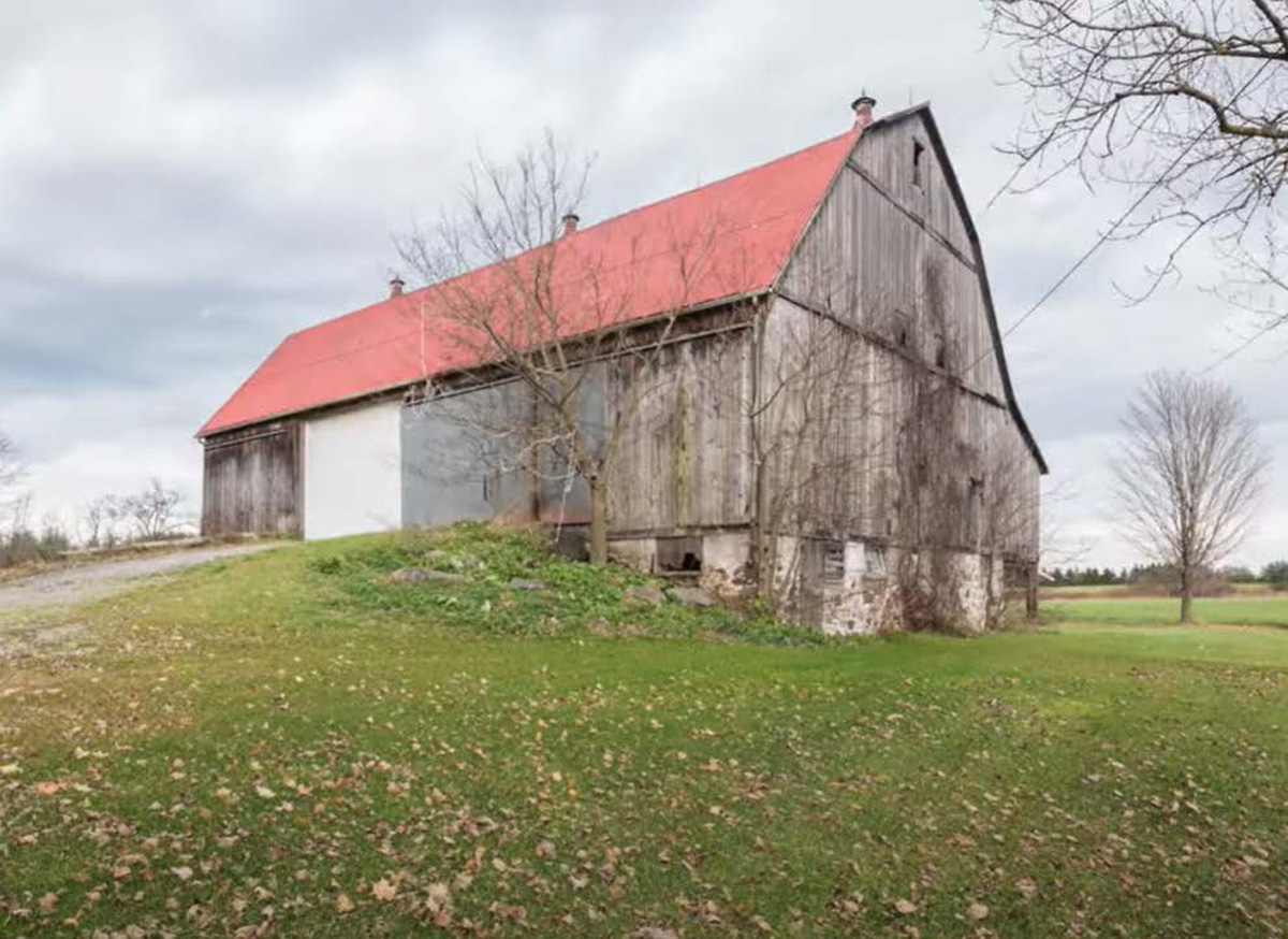 - 1890s barn was crane-lifted from original stone foundation; removed to field during construction