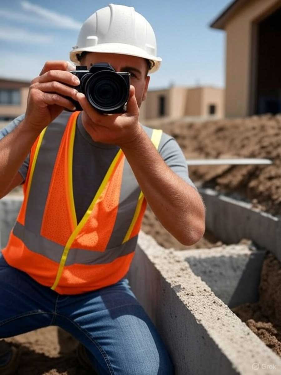 - If workers or clients will be in the photos, ensure they’re dressed appropriately and positioned appropriately. Safety gear should be properly worn.
