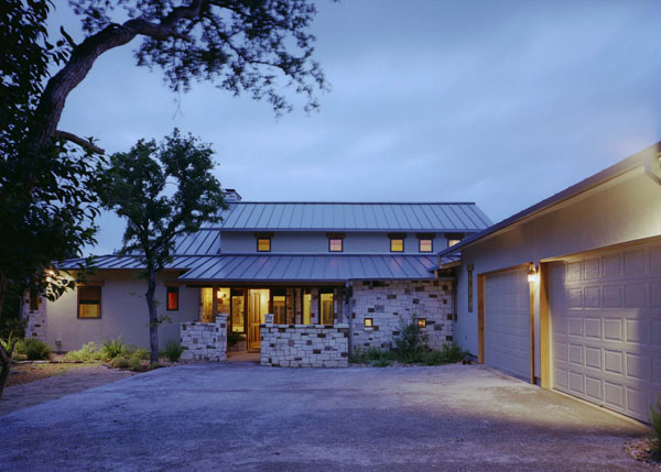 They also liked the architecture. “Very creative, unique home – nice use of stucco/stone and standing seam roof,” writes one judge. “Great mix of clean lines and warm wood tones,” writes another.