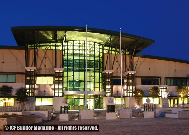“We selected ICFs for wall construction because it presented an extremely effective method of achieving the reinforcing requirements for exterior walls,” says William H.S. Murray, lead architect for the project. In fact, the designers found that ICFs cost 25% less than masonry construction, because of the additional reinforcement masonry requires.