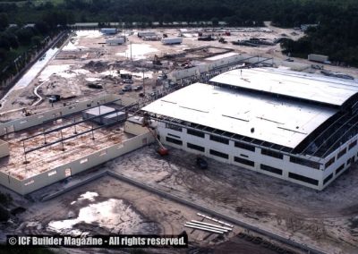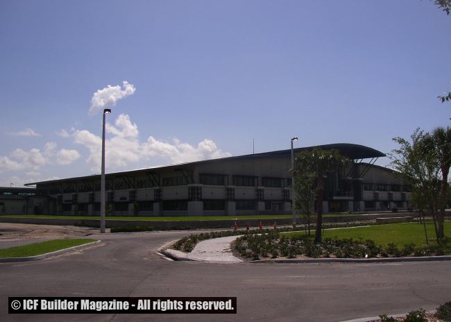 The reserve center is actually three separate buildings totaling 140,000 total square feet. ICF walls in the main building are 44 ½ feet high, the two peripheral buildings have walls 18 feet high. Shared by the Florida Army and Naval reserve forces, it is the largest building of its kind in the state. Construction was completed in late 2004.