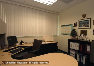 Murray adds, “ICFs presented a reduction in labor costs for construction, as well as offering advantages of superior energy efficiency and sound control… For example, we were able to line all the warehouse walls with gypboard, because it is fully supported on the ICF walls.” The ability to apply synthetic stucco exterior directly to the ICFs also resulted in cost savings.