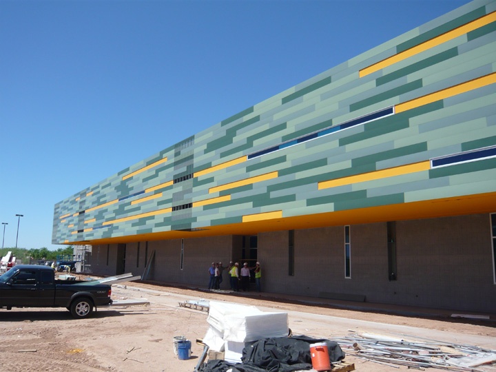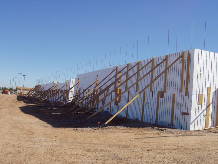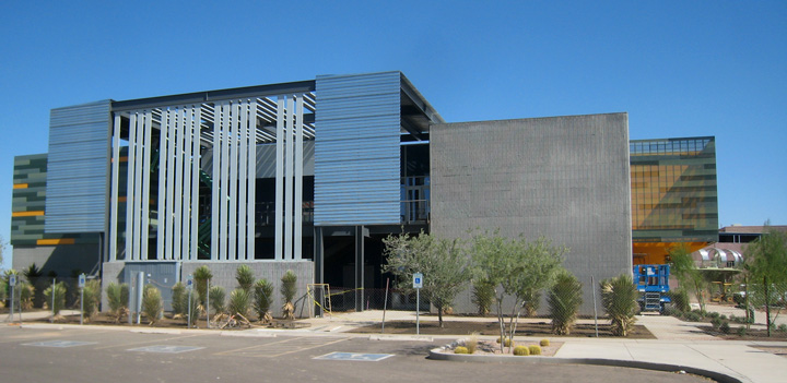 For starters, this community college in the southeastern suburbs of Phoenix represents one of the first times ICFs have been used for educational construction in the western United States. Second, the building achieves several engineering feats previously thought unworkable, such as cantilevering the second story ICF walls almost ten feet beyond the ground floor. It is also designed with sustainability in mind, and LEED-Silver certification is pending.