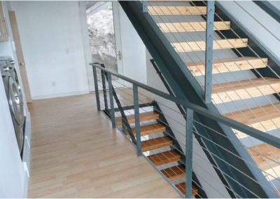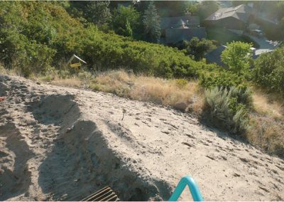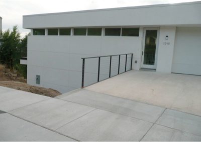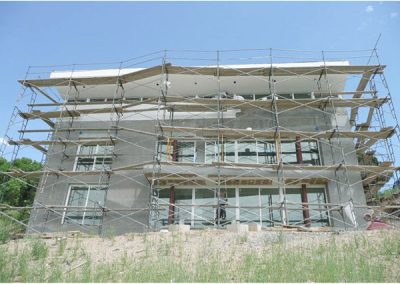 The extreme slope of the lot, unstable soils, and floating walls meant the job would require a lot of steel and a lot of concrete. “For the majority of the house we used two #5 bars 8” on center both vertical and horizontal,” McCullough says. It ended up with about 58,000 linear feet of rebar and 262 yards of concrete placed in 15 different pours.