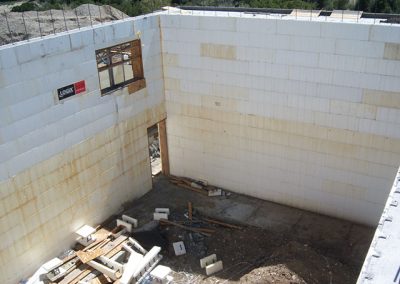Because of the soil pressure at these depths, the engineer specified 10” core LOGIX ICFs, with two #6 horizontal and two #5 vertical rebars every 8” on center. Proper concrete consolidation was a must, despite the congested rebar. The two-man first-time installation crew finished the ICF portion of this ambitious project in only six months.