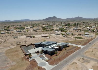 Thermal barriers are important in the Arizona desert. In order to maximize efficiency, the structure is capped with at R-54 roof made with Structurally Insulated Panels (SIPs). The building is heated and cooled by eight packaged rooftop heat pump units. In all, it performs 40.6% better than the current ASHRAE codes, which is 21% more efficient than the initial energy modeling suggested.