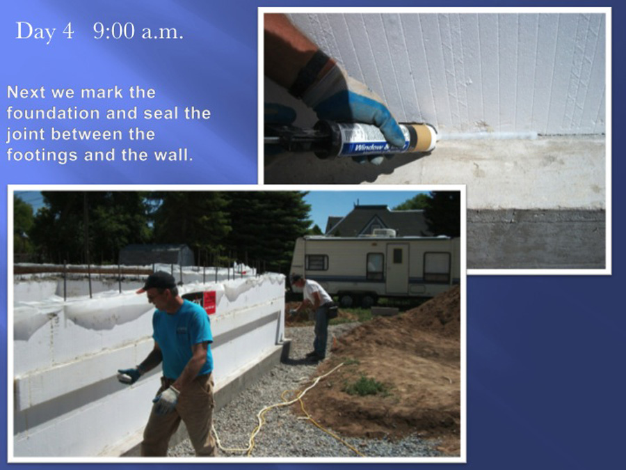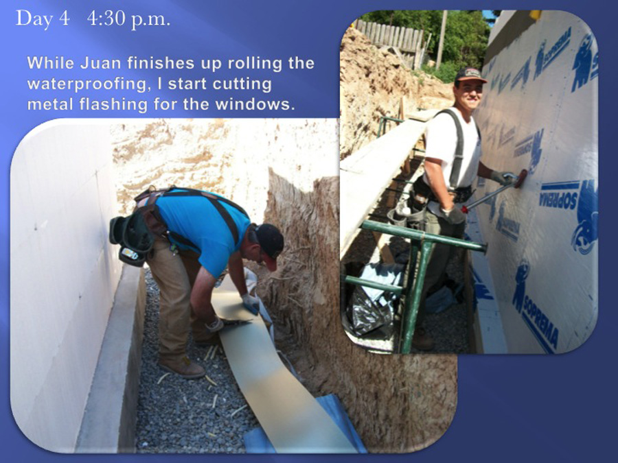 Fortunately, McCullough and his crew of professionals were up to the daunting task. They arrived at the jobsite early Monday morning, having met the truck delivering the ICF at the outskirts of town, and got right to work. By Tuesday evening, the basement walls were stacked and braced, and by the time the inspector arrived late Wednesday morning, the rebar was in place as well. That afternoon, they pumped, and Thursday they stripped the bracing and applied the waterproofing, a peel-and-stick product from Soprema called Colphene. Two weeks later, they came back and stacked the main floor walls on a similar schedule.