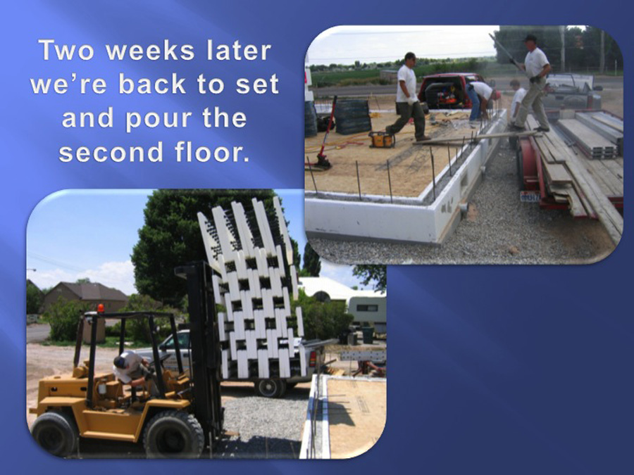 This home was to be built in Vernal, Utah, a small community located 3½ hours east of Salt Lake City. Unable to find a qualified installer in the rather remote location, McCullough put together a 5-man crew and did the install himself. “There was a ready-mix plant and pumper that serviced the nearby oil fields,” says McCullough, “ but everything else we had to bring with us or arrange for it to be shipped to the jobsite in Vernal.”