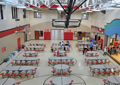 Inside the school, only Energy Star rated equipment was used. The new gymnasium floor was made from bamboo, except for a few hardwood sections salvaged from the old gymnasium.