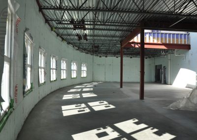 ICFs from NUDURA Corp. were used to provide insulation in the exterior walls. They easily conformed to the building footprint. Even a suspended radius wall proved possible with ICF. Windows are made using sandwich panels with gel between the panes to provide maximum efficiency. An R-42 roof assembly from Tremco completes the envelope. Geothermal heat pumps make major efficiency improvements to the HVAC and water heating systems.
