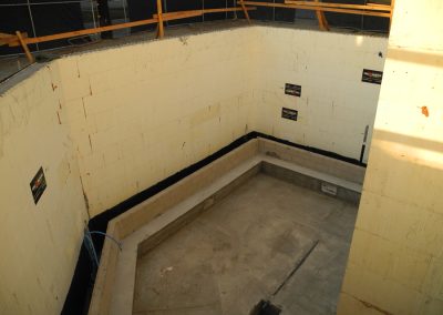 Construction challenges included forming a series of ICF walkways and flying buttresses, some of which are set at a 45-degree angle 18 feet above the floor.