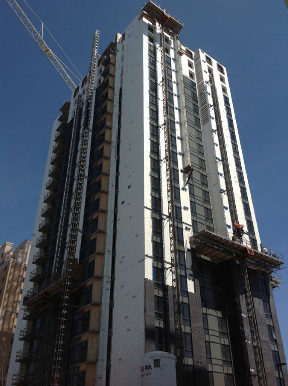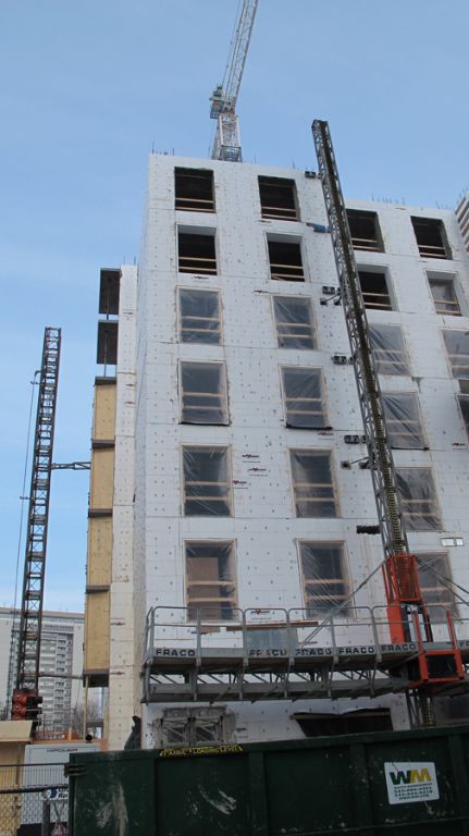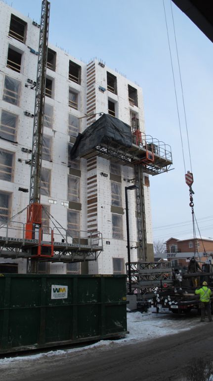 ICF work continues during the winter months, with minimal hoarding and heating costs, as seen in this shot of Luxe Waterloo taken in mid-January 2013.