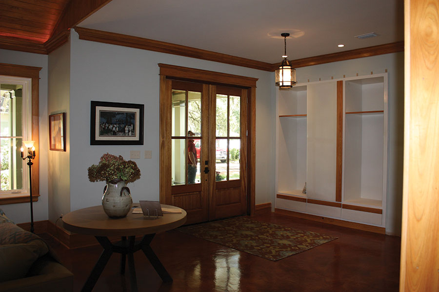 For Alabama, that meant protection from hurricanes and the ability to withstand winds up to 185 mph, so in addition to ICF walls, Aiken incorporated a number of hurricane-resistant, “code-plus” measures, such as 4-inch-on-center nails on the roof edge and windows with a DP-50 rating to withstand Force 5 hurricane winds. To achieve Fortified standards—which this home did—engineering details and photographic documentation must be provided, showing water barriers, connection details for trusses, porches and other components and photos from foundation footers to the shingles.