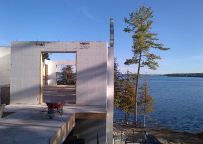The new home and boathouse integrates multiple cutting-edge construction materials, including ICFs, SIPs, timber-frame, pneumatically heated floor slabs, and even an ICF green roof . It fell to Gordon Toms of Toms Contracting to make the dreams a reality.