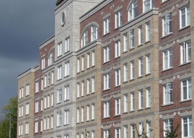 The project’s design is fairly complex when compared to typical low-income housing. The architecture features an all-brick exterior, radius-topped windows and doors on all sides of the building, and a free standing 14-foot-high bell tower over the front entrance.