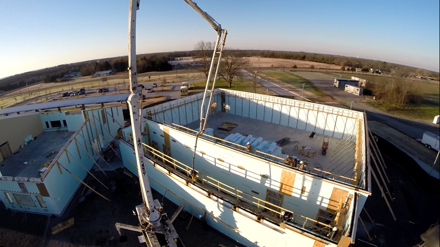 “Probably our biggest challenge was schedule,” he reports. “Although, we have been building with ICF for almost twenty years, we saw some significant challenges in meeting the aggressive schedule due to tall walls and weather. However, all obstacles were overcome and we accomplished all targets”