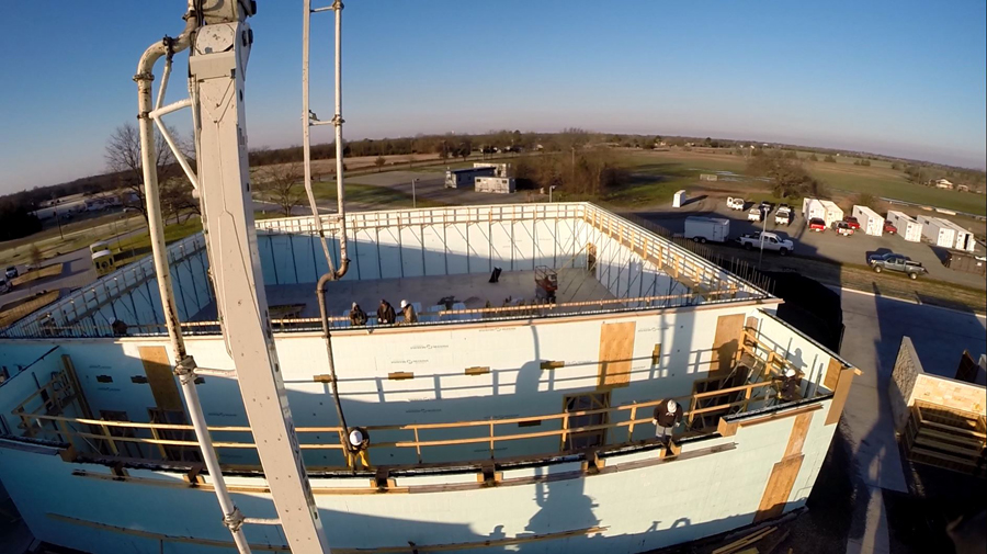 Halff and Associates did the design work. Given the goals of minimizing energy consumption while maximizing safety in a tornado-prone area of North Texas, ICFs were a natural fit for the project. With the architect, engineer, and owners convinced that ICFs were the material of choice for the walls, they selected Kevin Peterson, LLC of Bonham, Texas as general contractor and ICF installer.