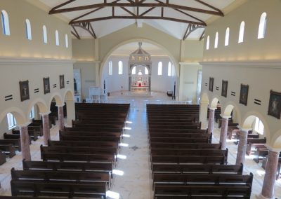 Separating the chancel from the nave, this interior ICF arch spans 40 feet wide and soars 35 feet over the heads of parishioners. Supporting pilasters were made by replacing the foam with plywood slip forms.