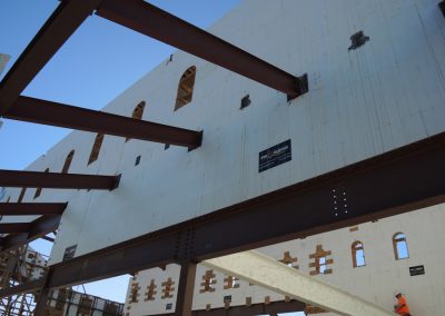With the ICF walls in place, the steel moment framing was craned into place. Thanks to a significant amount of painstaking work with PLS and other lasers at every turn, “Everything was dialed in perfectly,” Fetters says.