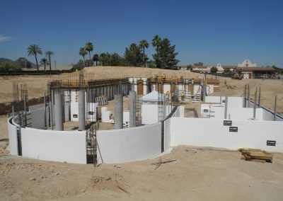 Rod Fetters of ICF Specialist says, “This project, though not certified officially by LEED, would qualify easy for a gold rating.” To stay cool in the extreme heat of the long Phoenix summers, it has a extensive basement. About 9,000 sq. ft. of the total 12,308 sq. ft. footprint are underground to take advantage of the steady, cool temperatures. The large excavation (90% of the entire building footprint) did add to the challenge of pour days, since pump trucks and other equipment had to set up well away from the building and have a larger reach than usual.