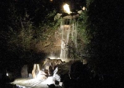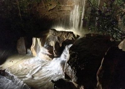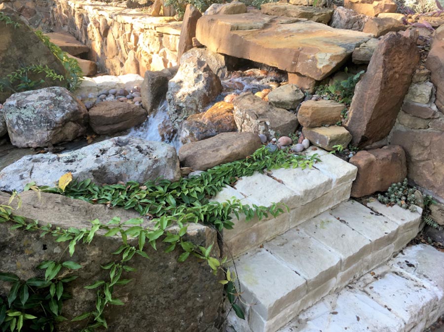 The project has two major components, a 70-foot-long retaining wall and a large waterfall feature with a pumphouse for the equipment.