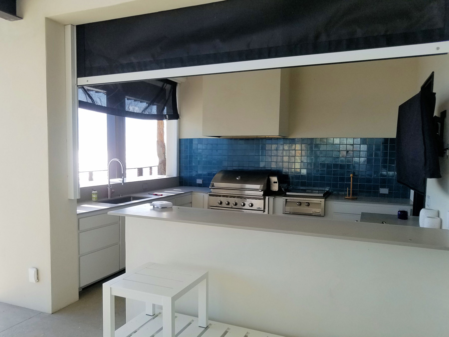 In comparison, Casa Tres Playas fared extremely well. It was one of very few beachfront homes that survived intact. There was minor cosmetic damage caused by flying debris, but zero structural damage to this house. Windows and doors survived intact, and other than a small puddle that leaked in around the giant glass door that flexed at the height of the storm, there was no water intrusion. The family was able to return home as soon as power was restored to the area.