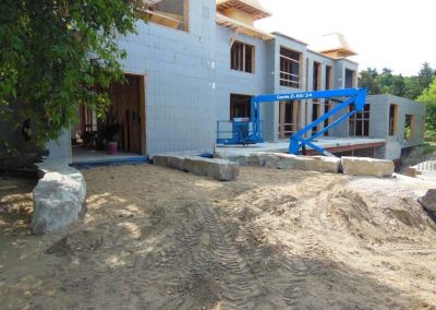 Gonell outlines the scope of the project and its challenges. “This project was designed to display the grandness of a French Chateau. This meant integrating high ceilings—as high as 26 feet in some areas—long spans to allow for open spaces, and heavy-duty roof joists in some areas to accommodate rooftop gardens and snow loads.” ICF walls were vital in order to have sufficient strength to carry these loads, and eliminated some of the steel support beams that would otherwise be necessary. In certain sections, ICF beams were formed to carry some of the loads, and ICFs were also used as supporting walls for the elevator shaft which ran from the foundation up to the second floor. All window wells were also made out of ICFs which were then clad with marble and incorporated a green roof system to soften the view.