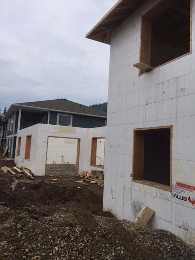 Dave Micku of Sandy Ridge Construction says, “This is the only subdivision in Salmon Arm where every house is constructed of ICF. With the changes to the B.C. energy codes in the last couple of years, it only makes sense to build with ICF. Being a mass wall system, it takes all the envelope problems of getting to R-24 with wood construction and throws them out the window.”