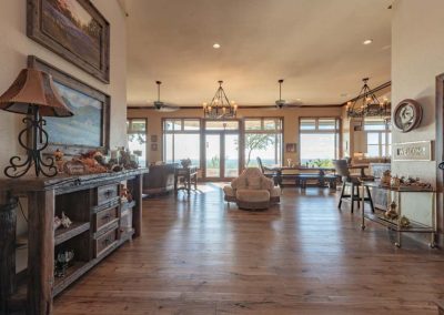 Building on the lot was a challenge. The property has a steep slope on one side that is approximately 100 feet below the pad site. Although the property is nearly two acres, there was only a small area on the property where the home would fit. Views were also extremely important to the couple, says Klob. “We wanted the home to be somewhat hidden from the road,” he explains. “The design blocks the fantastic views as you enter the driveway—it isn’t until you enter the front door and see the valley beyond that a full appreciation can be achieved.”