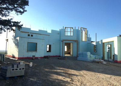 Built using Nudura ICF blocks, the home had 9,642 sq. ft. of exterior ICF walls and total conditioned space of 4,653 sq. ft. This wasn’t intended to be your average residential home. Cedar Hills, Texas, is at very high risk of tornados, with an average of four hitting the town each year. The homeowners wanted a safe room along with more interior walls than usual, and some challenging decorative touches such as arches poured out of concrete.