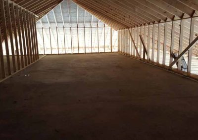 The floors—including the attic floor—are all concrete, with integral radiant heat in the basement and ground floors. The steel pan decking system is supported by Metwood Tuff Beams, which allowed the builder to run electrical chases, plumbing and A/C trunk lines through the beams. There’s no need for bulkheads or a dropped ceiling. The floors and walls are strong enough to create upper and lower stacked garages, which this home has.