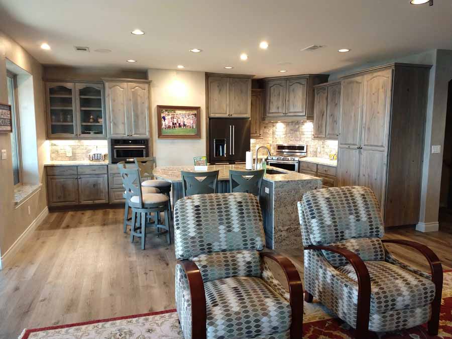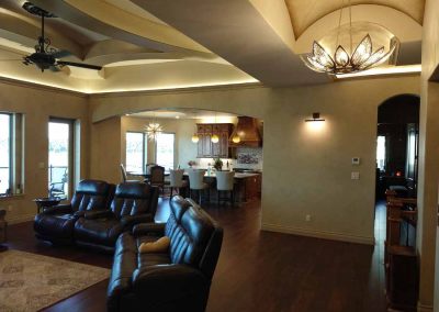 Just as the home was nearing completion, torrential rains raised the water levels in the lake to flood stage. The first floor of the home filled with five feet of water. Duncan reports damage was superficial. “We simply power washed the interior and exterior after the flood and were able to continue to final construction with no damage at all.”