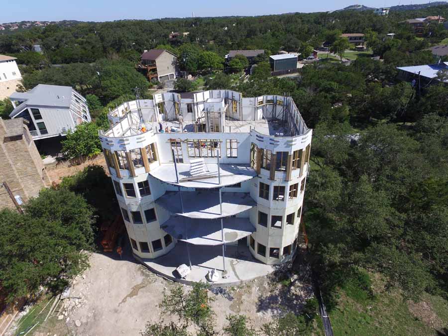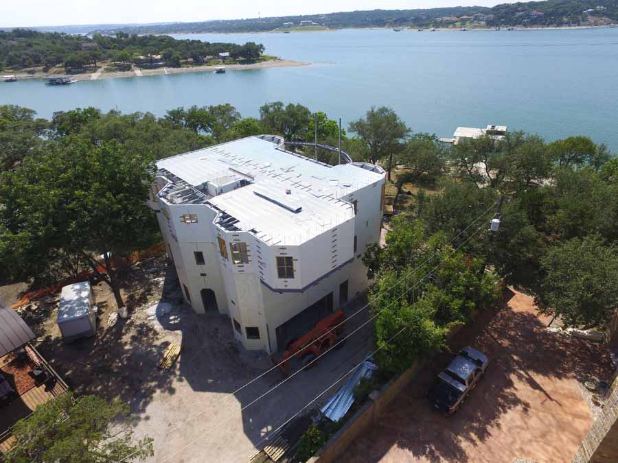 Built on a hillside overlooking a beautiful Texas lake, this four-story custom home is an example of how beautiful, strong, energy efficient homes can be built to withstand extreme weather events without compromising on lifestyle or budget.