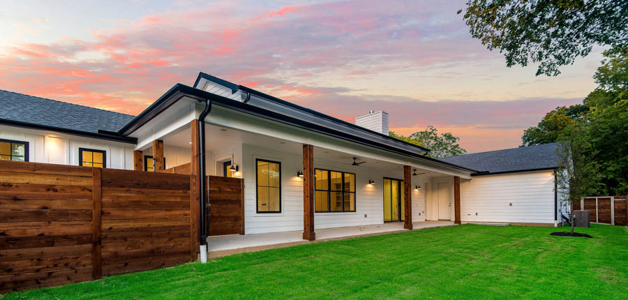 Buyers of new homes in Dallas got some sophisticated options when this “modern farmhouse” home was completed last year. The home is an off-site prototype model for an eight-home ICF community that is being developed by 4Tree Development LLC and built by Hoffmann Homes for a new development, Abode @ White Rock. While the exterior feels unquestionably like a farmhouse, the overall design is current and contemporary.
