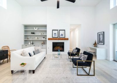 Hoffmann Homes incorporated a covered area in the design from the garage to the house, but kept the garage entrance from opening directly into the living area. Rather than a backyard, this home features a long floorplan that overlooks a large covered porch along the side yard. The great room has views of the covered porch and side yard. The design takes into consideration the area’s vulnerability to hurricanes and the expansive soils. Hoffmann Homes exceeds standard framing design specs by incorporating hurricane tie down connections on every rafter that is connected to the top plate of the ICF walls of each one of their builds. The foundation features 45 piers that are drilled to the subterranean bedrock. The site also had a significant slope from the east side to the west side of the lot.