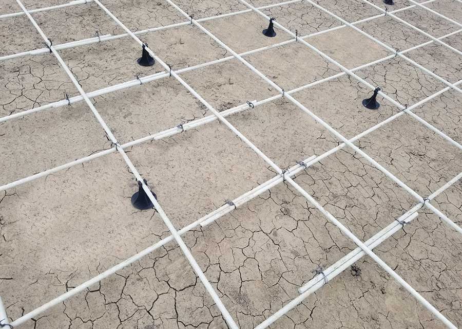 A photo of a grid of LiteBar suspended using LiteChair rebar chairs.