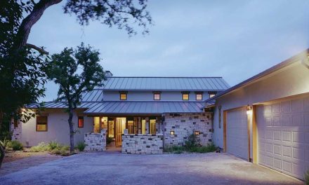 A casita (guest house) is also constructed with ICF. The casita was connected to the main house with laminated veneer lumber (LVLs), which were bucketed into the ICF walls on each structure. Decorative brick cladding was attached to the ICF walls on the front elevation of the house and casita. “This allowed the homeowners to have all of the benefits of ICF construction, while achieving the desired home appearance, highlighting the limitless design possibilities with ICFs,” says Kennaw. The casita completes the front elevation with a 14-foot-by-19-foot bedroom and bathroom living space, and a 12:12 pitched roof with a total height of 17 feet.