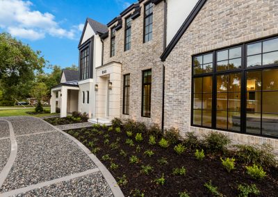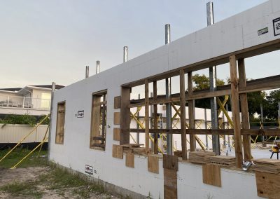 The front elevation was set out at the large window opening, which spanned the first- and second-level ICF walls. This window was an architectural showcase for the home, and its prominent location is what grabs the eye when people walk or drive by. The window unit was offset from the ICF wall to create an enhanced look, which presented challenges for structural support and waterproofing. Kennaw says the flexibility of Fox Blocks made it possible to incorporate the offset window unit to the ICF walls.
