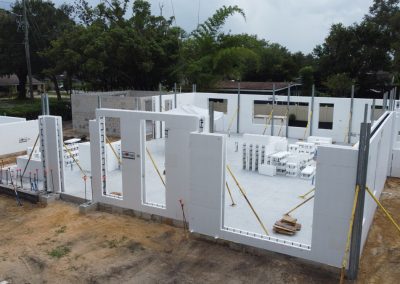 The most notable sustainable feature is the 12.8 KWh solar PV system. This roof-mounted system provides power to the home, which includes two electric vehicle charging stations and a Tesla Powerwall battery back up with a capacity of 28.0 KWh. Being in Florida, the ICFs help provide the homeowners with a more consistent and comfortable indoor environment that does not rely on heating and cooling. The homeowners typically do not pay for electricity thanks to the solar panels, and generally pay only the city’s required connection fees and taxes.