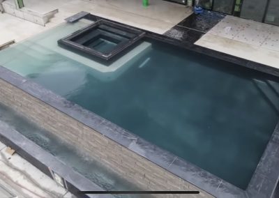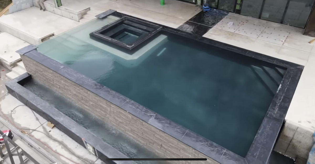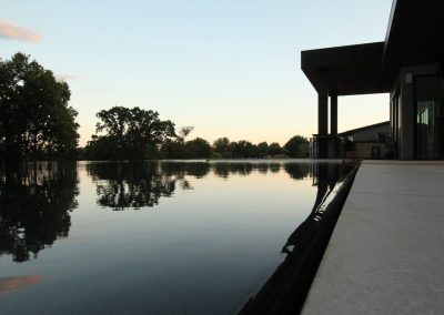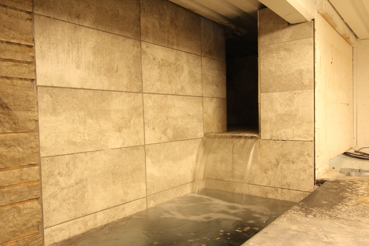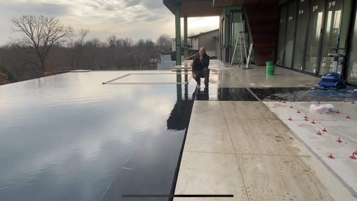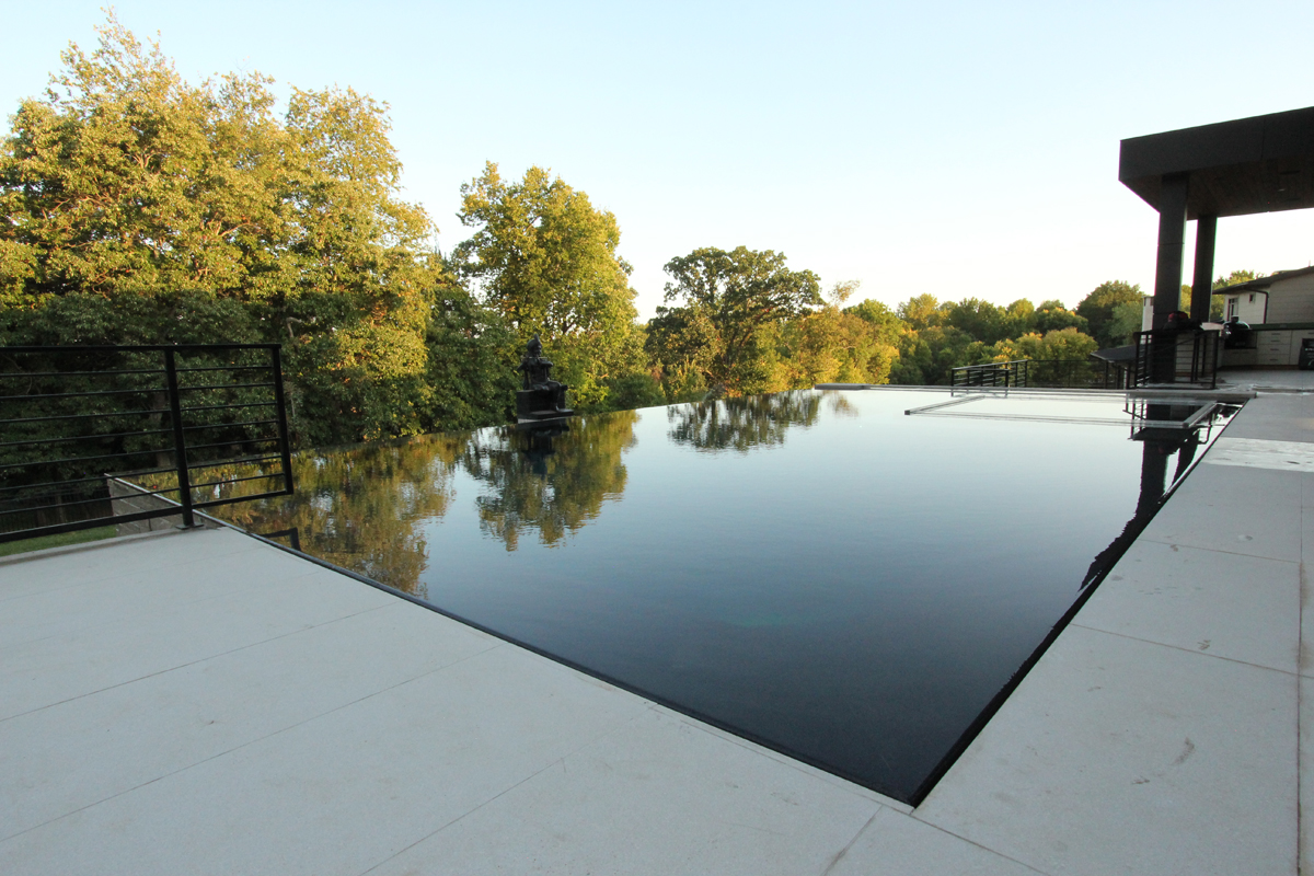 The wet edge was installed so precisely that the pumps function at only 25% power. “This is significantly less than the estimate from Pentair, which included cycling of 900 gallons per minute from